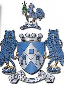 Crest:Crowing Cockerel and sugar cubes, supporters on either side, an owl upon film reel. Motto: Tute id fac